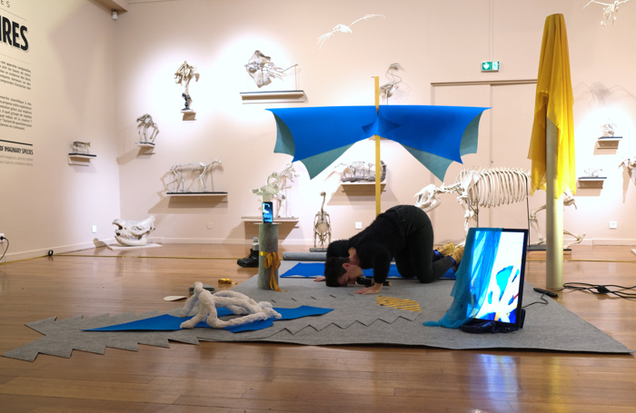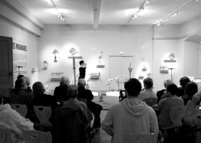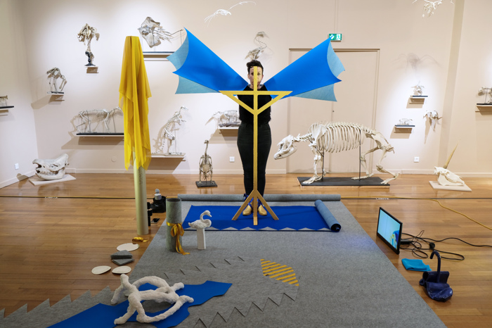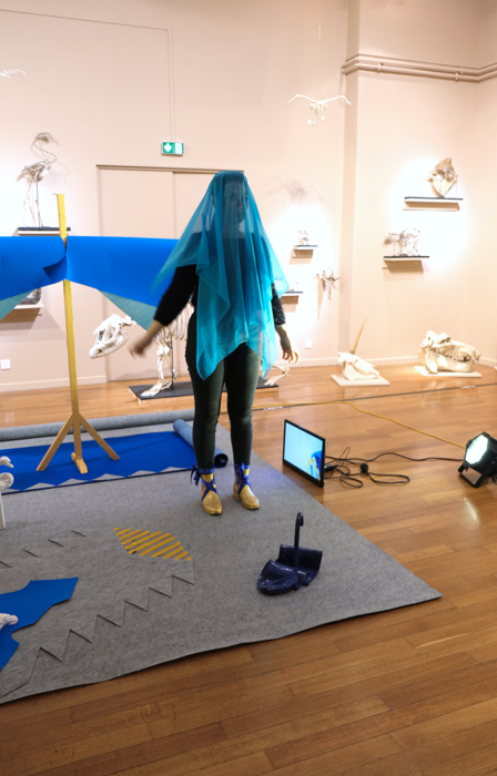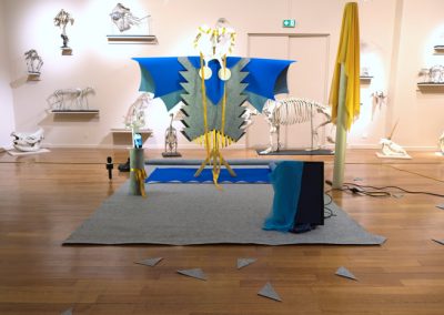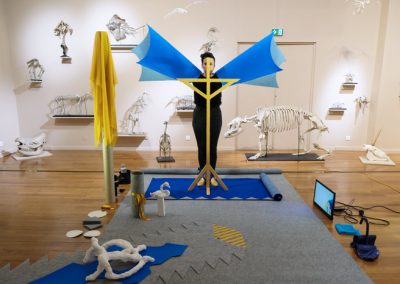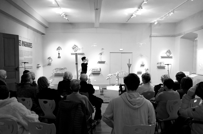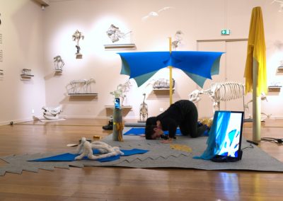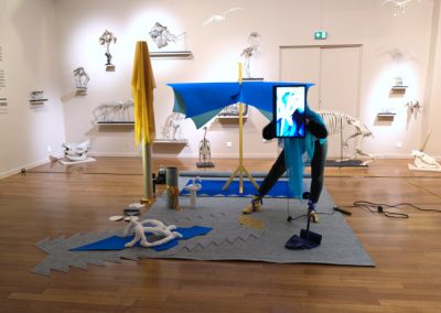 Performance au sein de l’exposition « Espèces imaginaires » en hommage à Georges Cuvier. Cette action établit des ponts entre les notions d’académisme, de mort, d’animalité et de féminité.