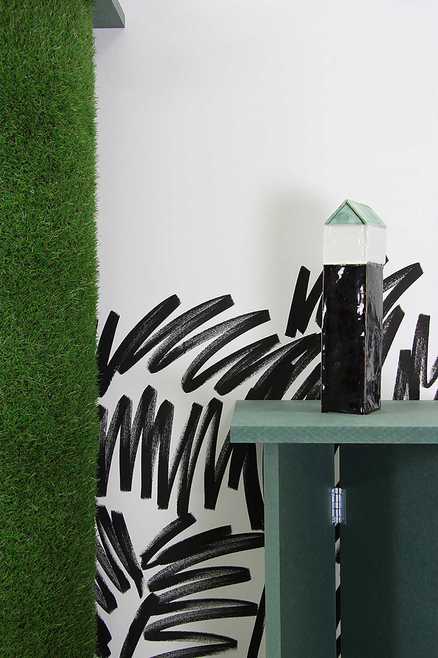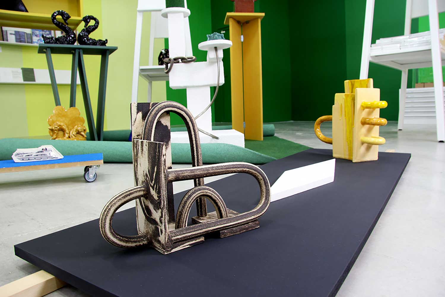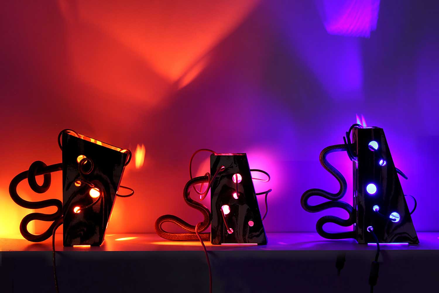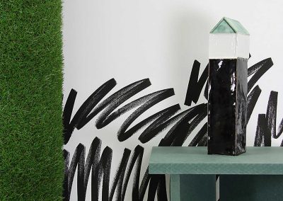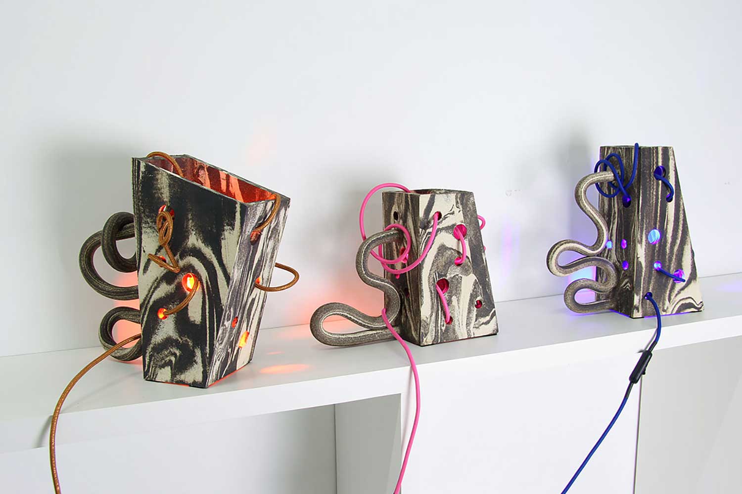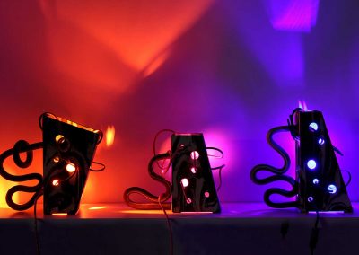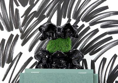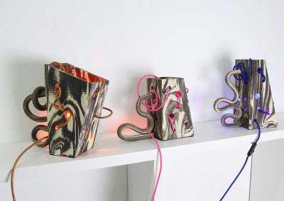 Looping, céramique lumineuse (grès noir & grès blanc mêlés)