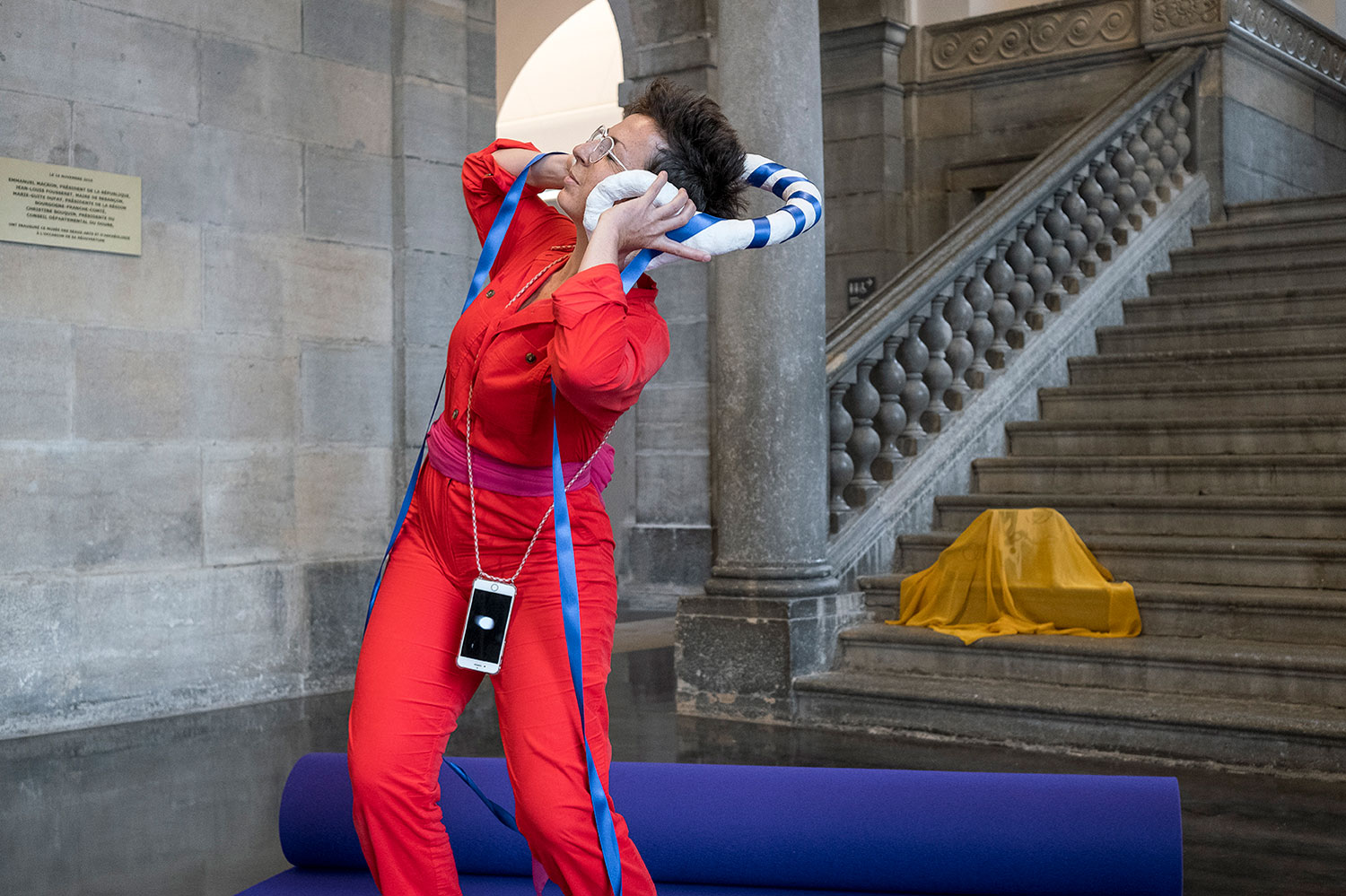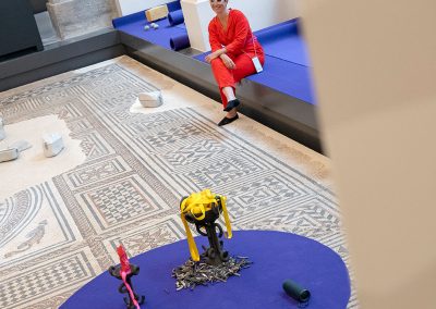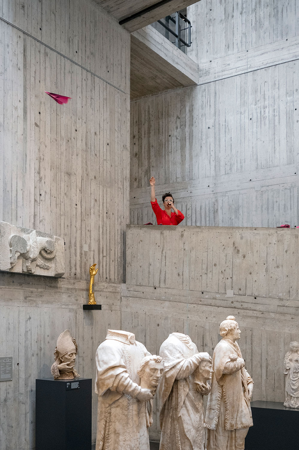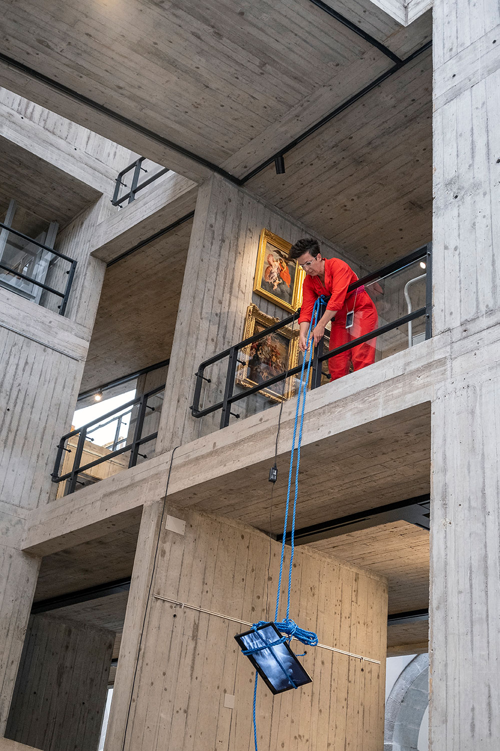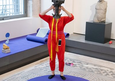 Action qui aborde la question de la citation dans l’histoire de l’art ( clin d’œil aux singeries du XVIII ème ) au sein même de la collection du MBAA, tout en évoquant aussi bien l’ actualité du moment ( guerre en Ukraine ) que des fragments de vie plus intimes ; le tout articulé de manière satirique et décalée, en toute animalité !