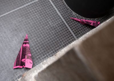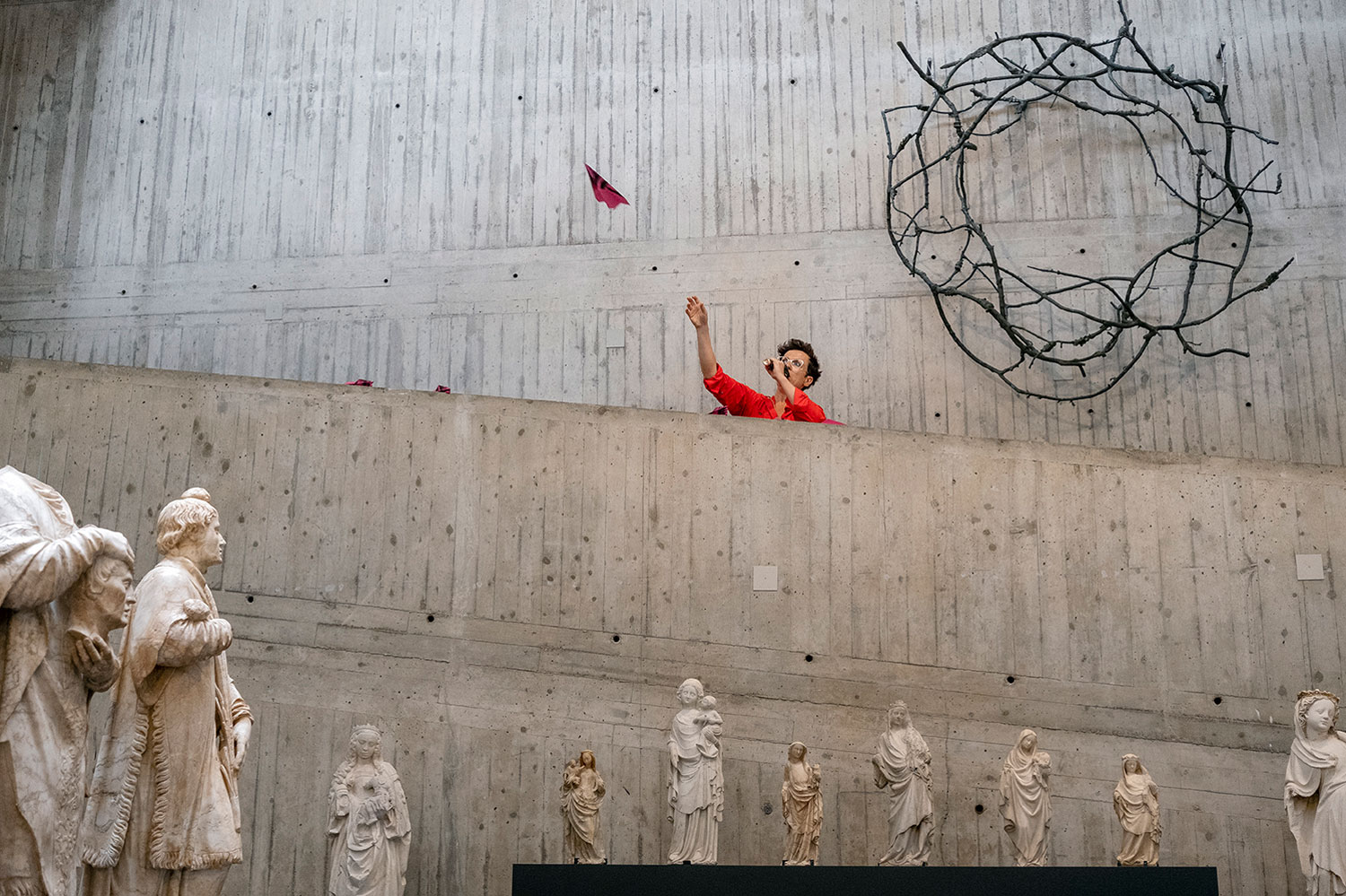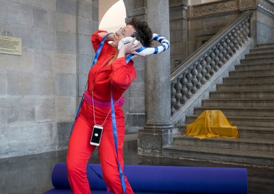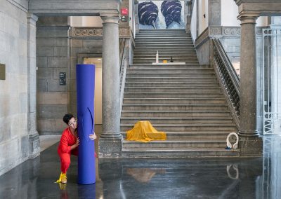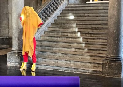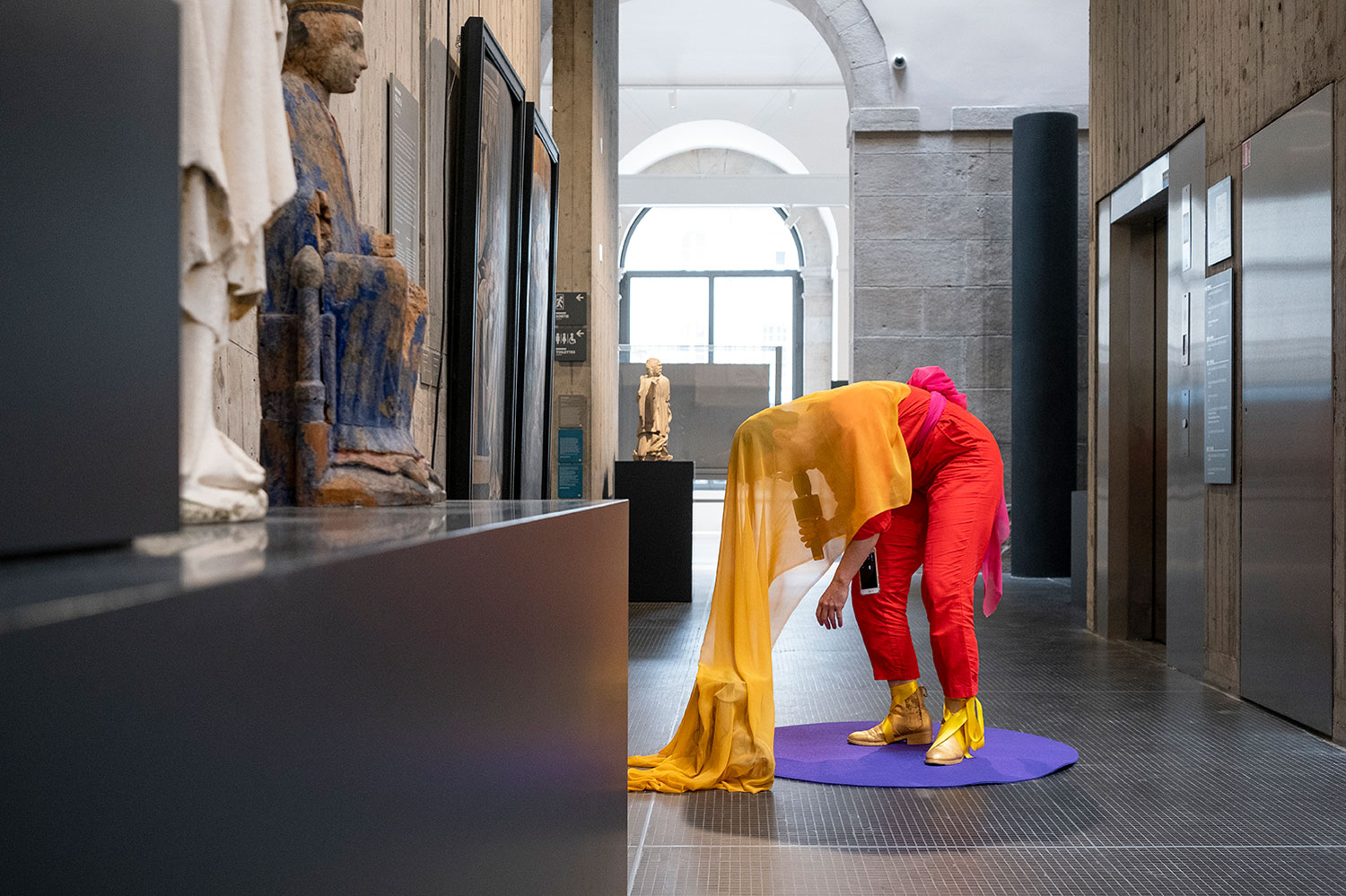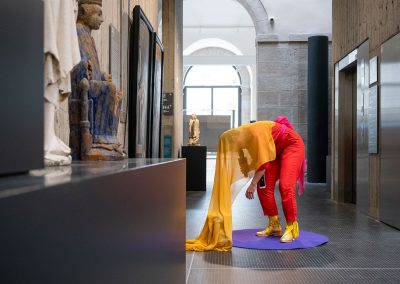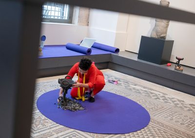 Action qui aborde la question de la citation dans l’histoire de l’art ( clin d’œil aux singeries du XVIII ème ) au sein même de la collection du MBAA, tout en évoquant aussi bien l’ actualité du moment ( guerre en Ukraine ) que des fragments de vie plus intimes ; le tout articulé de manière satirique et décalée, en toute animalité !