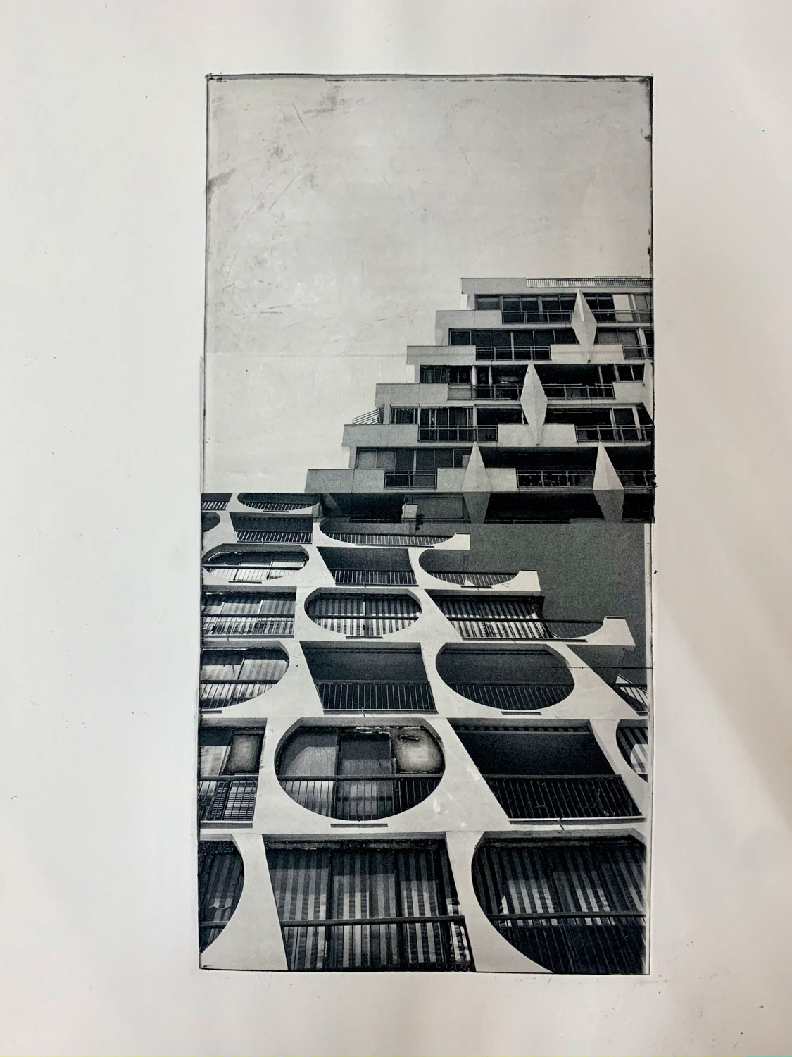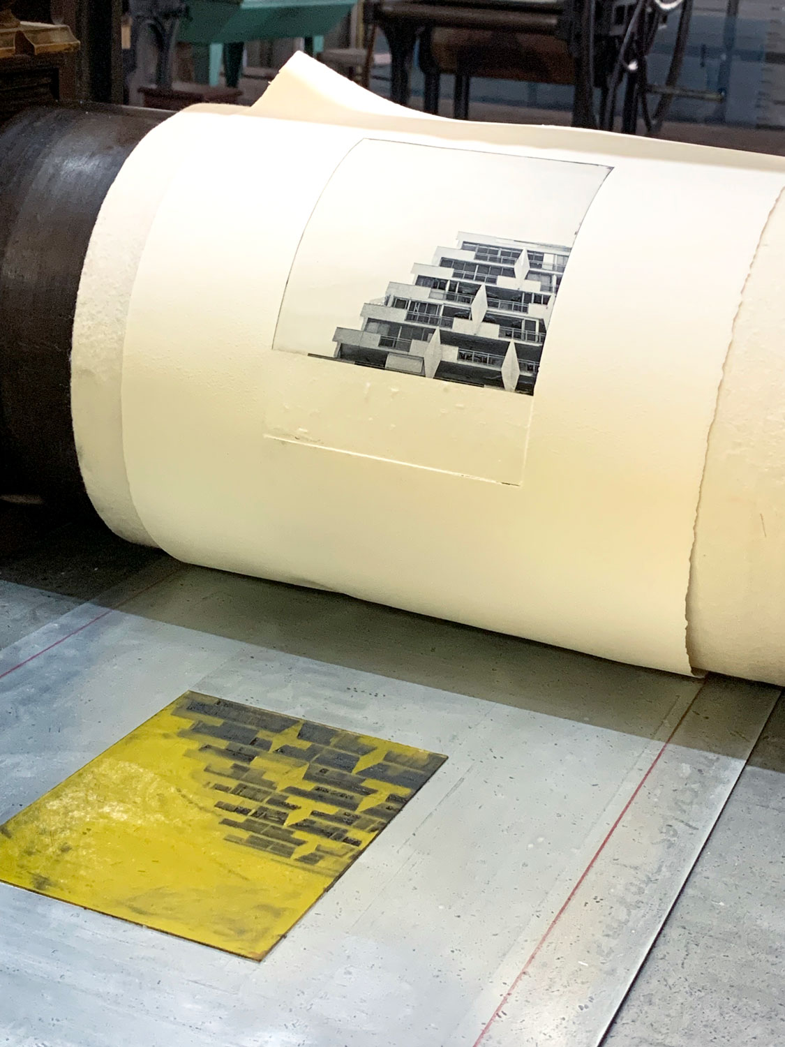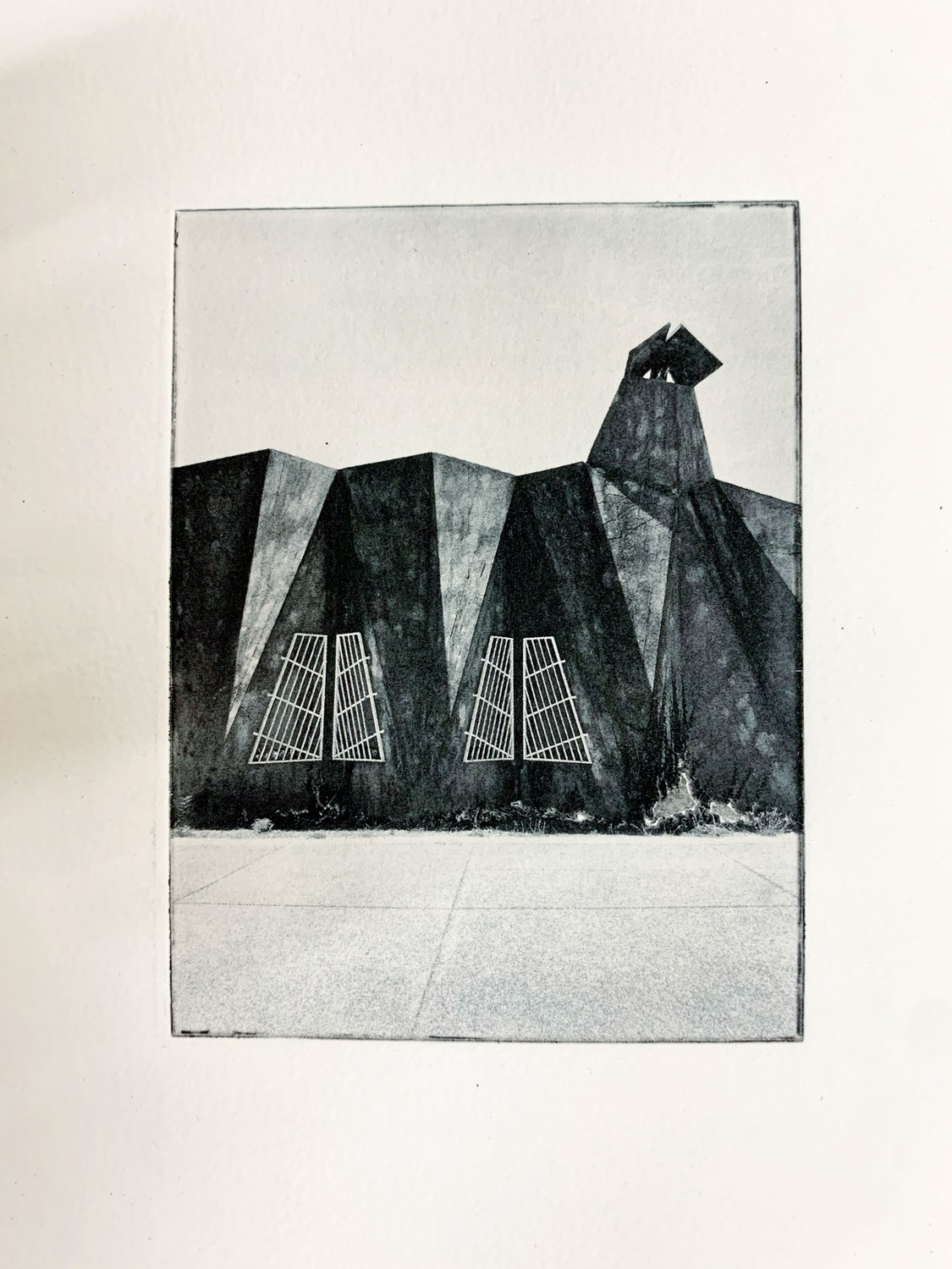 La Grande Chamotte 2023 série de 4 gravures sur l’architecture de La Grande Motte.Édition à l’occasion de l’exposition personnelle à la Maison de l’architecture – Besançon – 2023 gravures « taille douce » imprimées à l’atelier Didier Mutel – Orchamps (39)