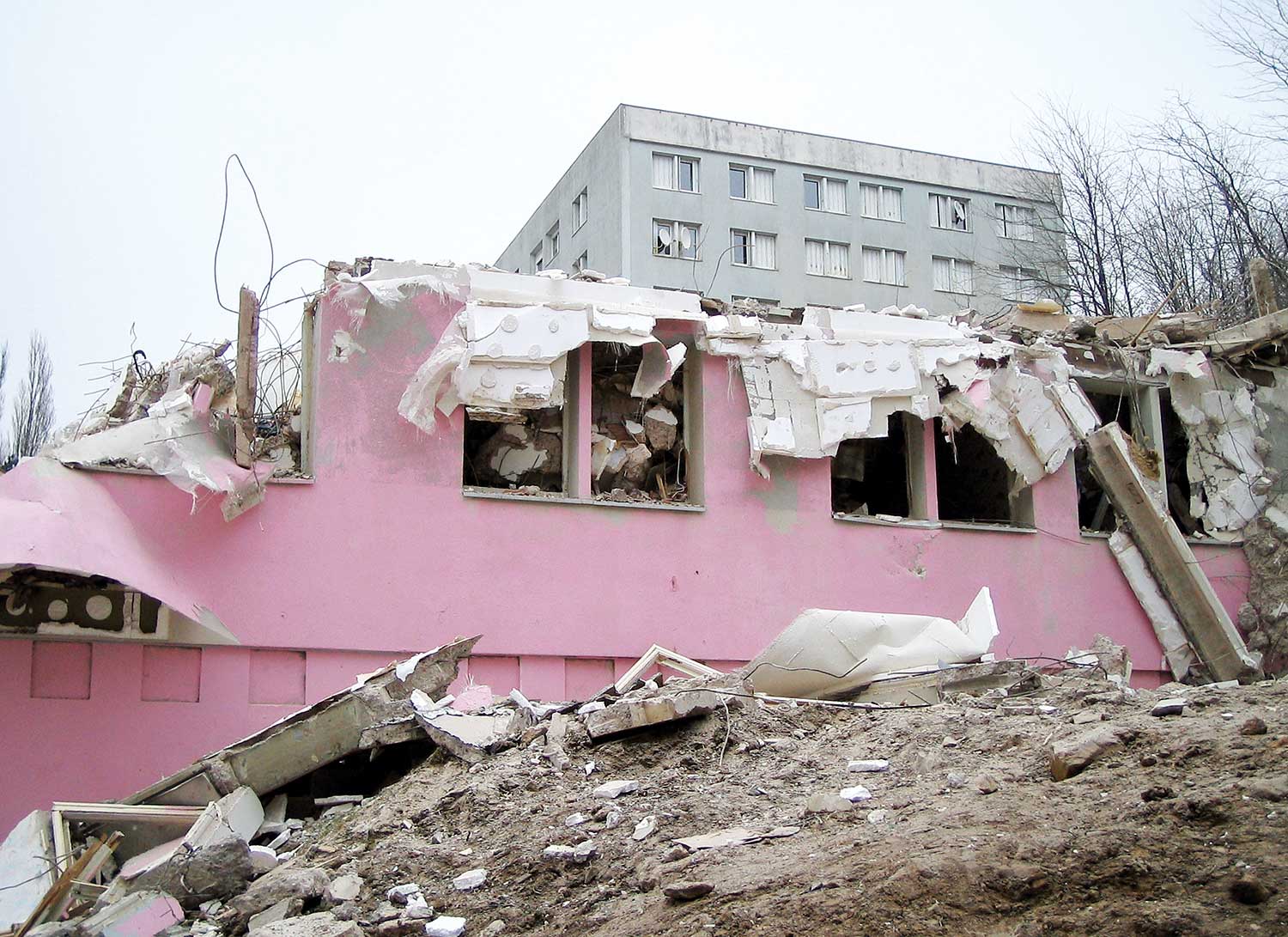 intervention picturale sur une tour en voie de démolition.